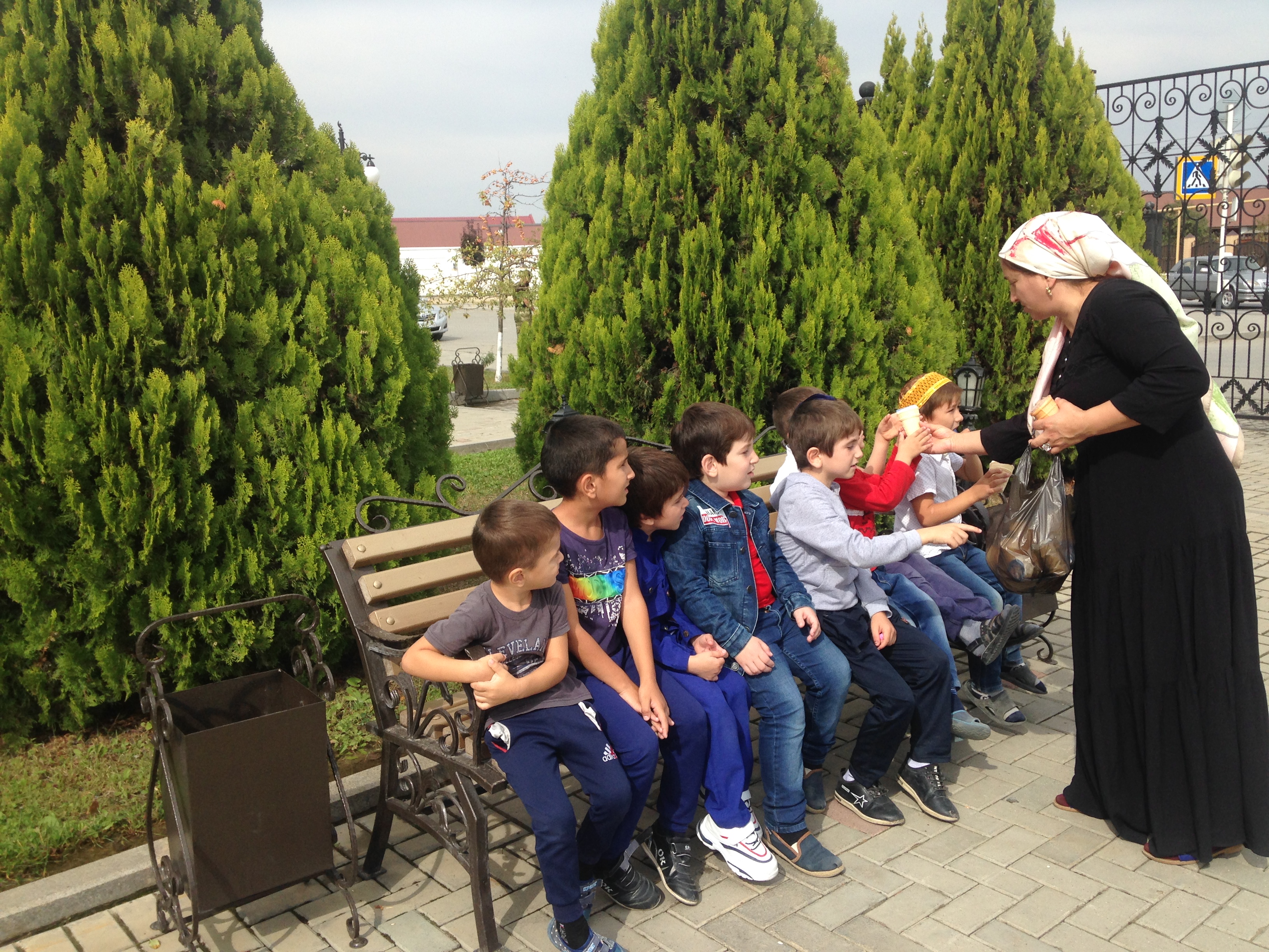 После прогулки мы мило поседели во дворе Мечети и ели мороженое))))